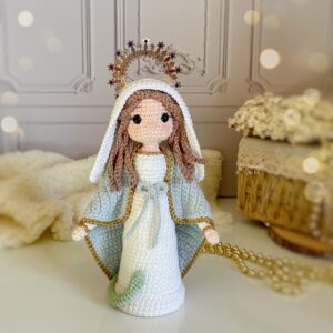 Nesse curso, você irá aprender a confeccionar Nossa Senhora das |Graças em uma versão encantadora de 20 cm, com manto e véu encantador, além de duas versões de cabelo.